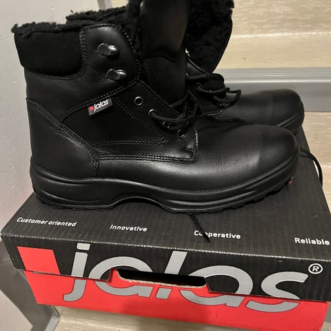 Jalas talvisaappaat, koko 44. Kengät on suunniteltu talvikäyttöön ja niissä on lämmin vuoraus sekä vedenpitävä materiaali. Mustat kengät sopivat kylmiin olosuhteisiin ja tarjoavat suojaa sekä mukavuutta talvikeleillä.