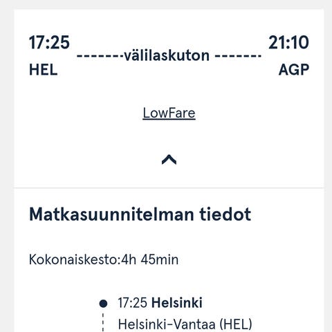 3 lentolippua Norwegianilla Malagaan ja takaisin. Varaus meno 25.12. ja paluu 10.1.2026. Menolentoja voi muokata, paluuta ei.