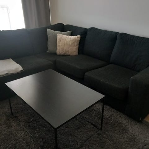 Kuvassa näkyy tahrat ja pohjasta on revitty suojakangas. Huom. Koiratalous!!