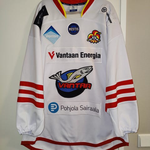 Myynnissä on Kiekko-Espoon kauden 24-25 Game Ready -pelipaita Ville Lajusen nimellä, numerolla ja nimikirjoituksella. Koko XXL. Paitaa on köytetty maksimissaan 5 kertaa.