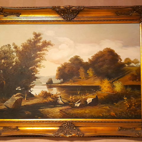 Koko 102x55 cm kehyksineen. Vanhahko taulu, jonka kehykset vaativat jo restaurointia.