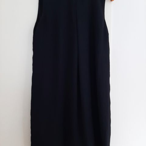 Kaunis musta-valkoinen neckholder mekko. Kangas kevyt, rypistymätön ja sileä pinnaltaan, joustoa on leveyssuunnassa. Selässä lisäksi reilusti joustava osa, joka lisää istuvuutta. Rintojen alla menevä saumakohta venyttämättömänä noin 96cm. Helma levenee reilusti, alareunasta leveys noin 130cm.