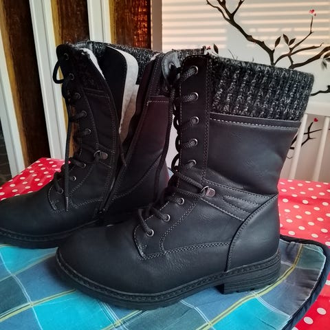 Ihanan lämpimät nauhalliset talvikengät karvavuorella, vetoketjut sivussa ja nauhat edessä. Kerran käytetty, olin auton kyydissä. (itselle pienet. normaalipostitus, diili ,haku