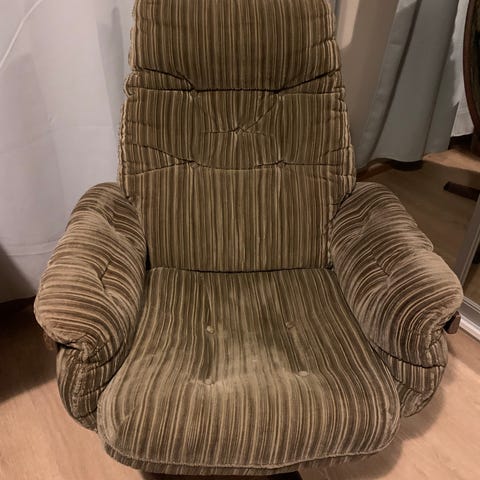 Käyttökuntoinen, vanha pyörätuoli. Säädettävä selkänoja sekä pöytätaso. Takapyörissä lukitus.