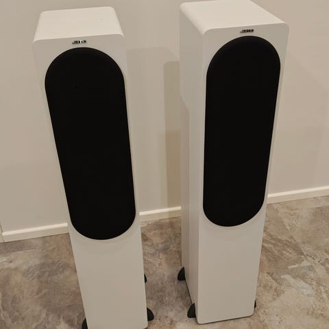 Malli: Jamo S 406, passiivinen 2-tiebassorefleksi-lattiakaiutin6.5 tuuman basso/keskiääni , 1 tuuman diskanttikaiutinImpedanssi: 6 ohmia per kaiutinRMS/Huippu : 80W/120WTaajuusvaste: 48 - 20000 HzSensitiivisyys: 90 dBJakotaajuus : 4 kHzMitat (LxKxS) ovat noin 21,5 x 85,5 x 24.5 cm per kaiutin, korkeudessa mukana kumitassut.Kaiutinkotelon kulmassa vaurio.Kierrätyskeskuksen tarkistama laite.