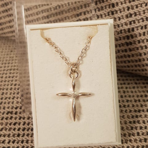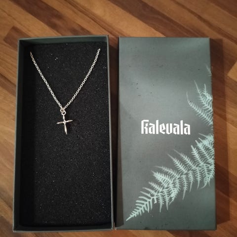 Kalevala Koru Onnenristi -riipus on tyylikäs, hopeanvärinen koru, jossa on tunnusomainen, muotoiltu ristiriipus. Riipus on kiinnitetty ohueen lenkkiketjuun.Valmistaja: Kalevala KoruKetjun pituus on noin 45 cmRiipuksen korkeus on noin 2 cmVäri: hopeanvärinenMateriaali: 925 hopea