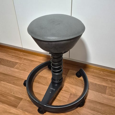 Tyylikäs moderni Stoo Triangle jakkara, jossa on musta kankainen istuinosa ja valkoinen jalka. Jakkara on suunniteltu tarjoamaan aktiivista liikettä, mukavuutta ja tukea, ja se sopii hyvin erilaisiin sisustustyyleihin. 57-86cm korkeussäätö