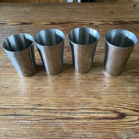 Teräsmukit, vet. 4 dl. Myyn settinä 5 e.