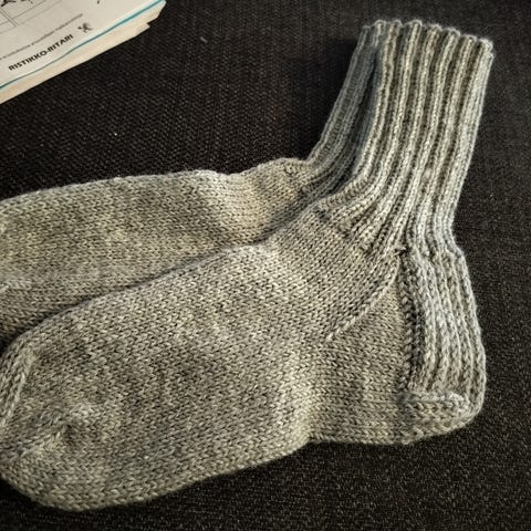Käsinkudotut villasukat. Koko 41.Vahvistettu kantapää. Lankana 7 veljestä. Voi pestä koneessa 40 asteessa.