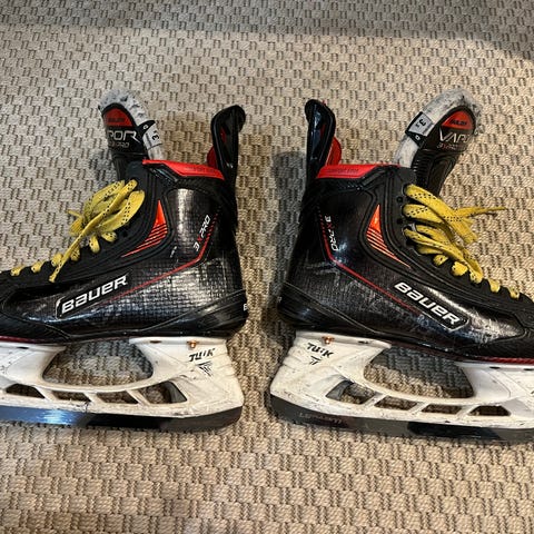 Myydään erittäin hyväkuntoiset Bauer Vapor X4 comfort edge luistimet, koko 10,5 eli 28,5. Pohjallisen mitta 18,5cm.