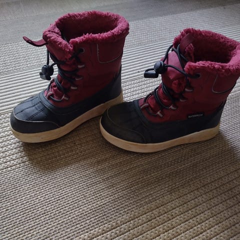Vain muutaman kerran käytetyt talvikengät/-lenkkarit, koko 28. VEDENPITÄVÄT. Kenkien yläosassa karvamainen vuori ja muuten fleecemäinen vuori, sivuilla heijastimet, tarrakiinnitys