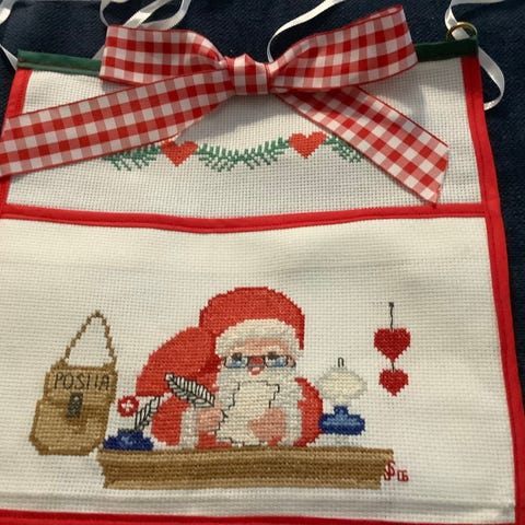 Hyvässä kunnossa oleva kankainen lahjakassi, 44x65cm. Punainen, jossa kultainen teksti.