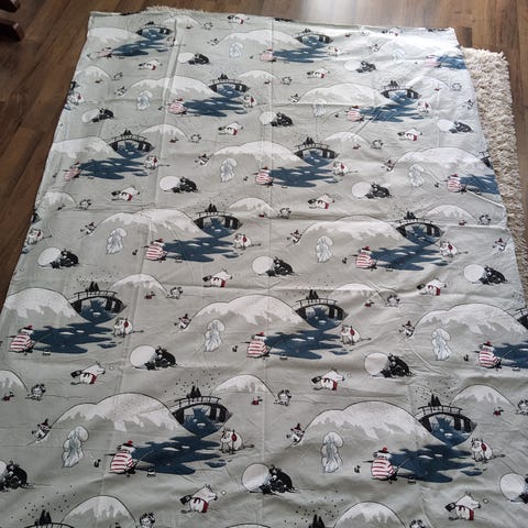 Finlayson Muumipussilakana ja tyynyliina, leveys 139 cm pituus 198 cm tyynyliina 50x60 cm 100% puuvillaa.