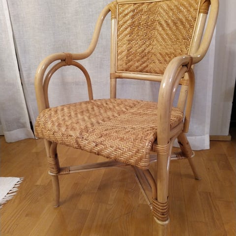 Rottinkinen keinutuoli, puuosat ja rottinki hyvässä kunnossa.