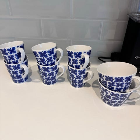 Rörstrandin Mon Amie -teemukit, vetoisuus 0,5 litraa. Jonkin verran käytetyt, pesty aina käsin.