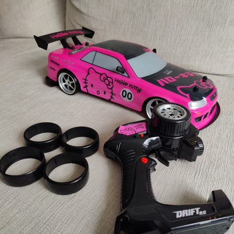 Hello Kitty kauko- ohjattava auto, väriltään pinkki. Sopii lasten leikkeihin ja harrastuksiin.