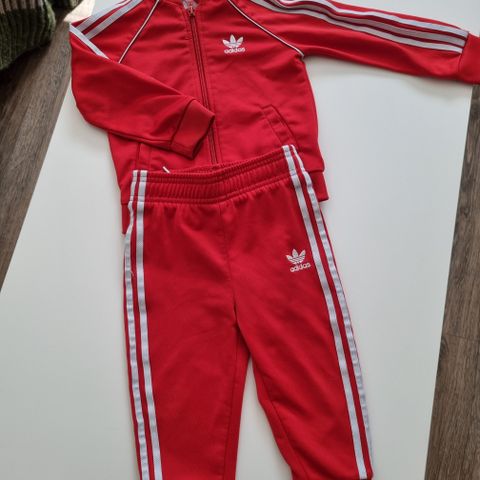 Adidaksen hieno verryttelyasu koossa 12-18 months. Ollut käytössä koossa 86. Musta kultaisilla raidoilla. Oikein siisti ja vähän käytetty. Housuista Adidaksen logossa kuvan mukaista kulumaa. Tosi hyvä hiekkalaatikolle, sillä sileä materiaali hylkii hiekkaa.