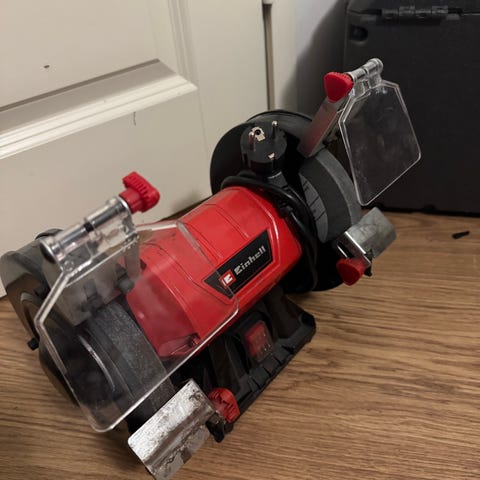 Made in DDR. Suojukset ehjät. Kahdella hiomalaikalla. Kiekon halkasija max 160mm, min 110mm. Paksuus max 20mm, min 15mm. Kiekon reikä 32mm.