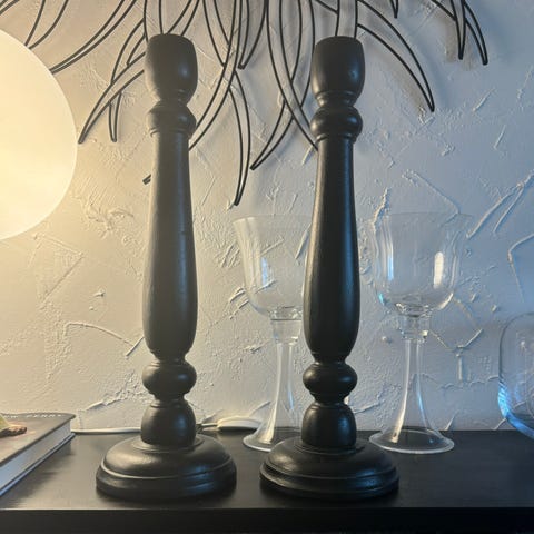 Mustat kynttilänjalat. Materiaali puu/ metalli. Korkeus n.10cm