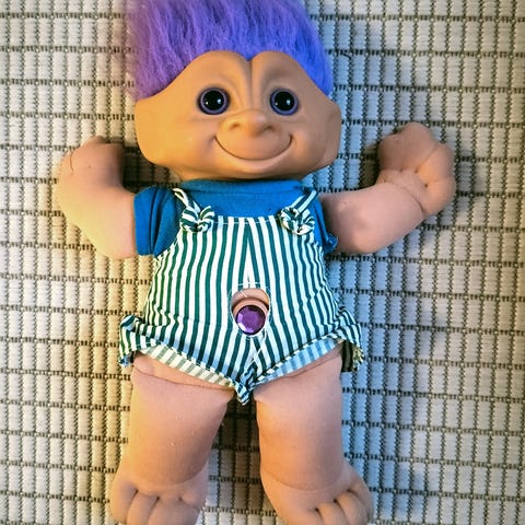 Täysin ehjä ja hajuton pehmo trollinukke "timanttinavalla".