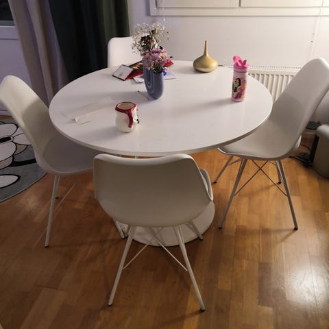 Myydään ikean vihals- merkkinen valkoinen pyöreä ruokapöytä. Uutta vastaava kunto, ollut pari kuukautta käytössä. Ei sovi omaan keittiöön parhaalla mahdollisella tavalla ja sen vuoksi myydään.