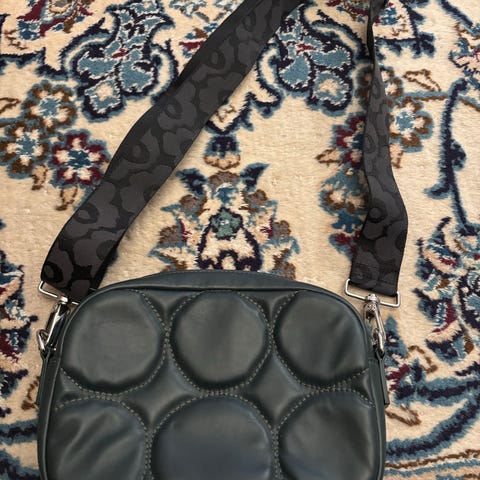 Marimekko, Gratha, kivet, unikko hihna, vihreä , musta, aito nahkalaukku