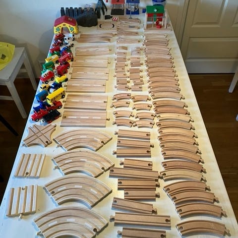 BRIO junarata-osat ja junat. Yhteensä 100 osaa. Kulkeutuu tarvittaessa Seinäjoelle ja Vaasaan omien menojen mukaan.