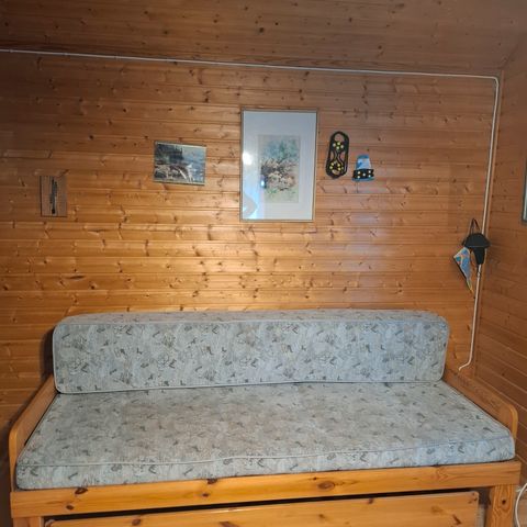 Levitettävä sohva pyörillä olevalla alalaatikolla. Siistit patjat. Levitettynä 147cm.