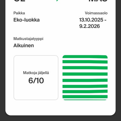 Matkoja sarjalipulta Oulu-Pasila (Helsinki)-Masala (Kirkkonummi)