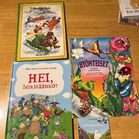 Muumit Lastenkirjat Hei, leikitäänkö? Hyönteiset Metsäseikkailu Herkkusuu