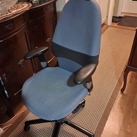 Annetaan pois tarpeettomana kulunut ja hieman likainen toimistotuoli.