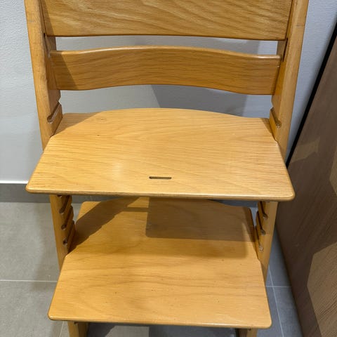 Tukeva, kohtalaisessa kunnossa oleva Tripp Trapp -tuoli.