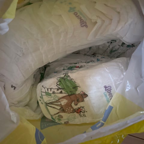 Annetaan avatut pakkaukset vaippoja, kokoa 1-2