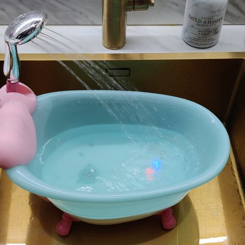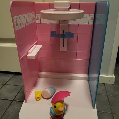 Vaatekaapissa on hauskat äänet ja ankka pyörii musiikin tahtiin. Vaatekaapin sisällä tanko ja viisi hengaria mihin vaatteita saa roikkumaan. Käsienpesualtaan peilin ympärille tulee halutessa valo ja nappia painamalla saa hauskoja ääniä kuulumaan.