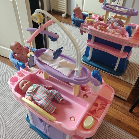 Myydään settinä Baby Born vaatekaappi, vedettävä matkalaukku istuimella, käsienpesuallas ja kylpyamme (+kaksi tuttipulloa)
