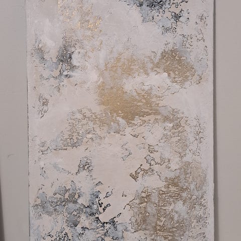 ♡ Kanvaspohjalla kullanhohtoinen, sekä matta akryylimaali, struktuurimassa