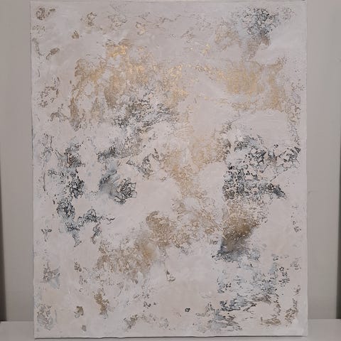 ♡ Kanvaspohjalla akryylimaali, kullanhohtoinen sekä matta akryylimaali, struktuurimassa