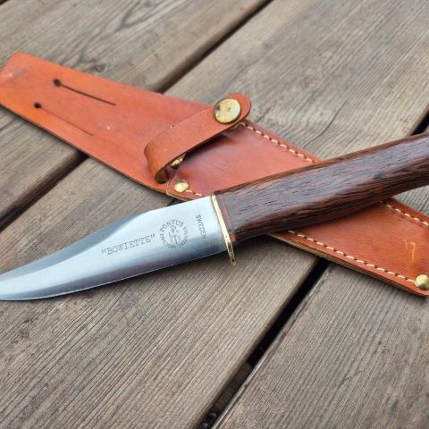 Vintage Pieni puukko Mora, koristeellinen nahkatuppi