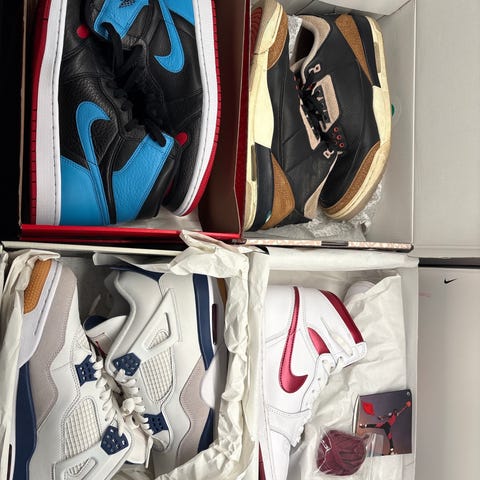 Myynnissä uudet ja käyttämättömät Nike Air Jordan 4 Midnight Navy -kengät koossa 42.5. Kengät on ostettu Stockx -verkkokaupasta, ja kengissä edelleen kiinni Stockx -pinssi. Kenkien mukana alkuperäinen kenkäboksi. Tarjouksia saa ehdottaa myös. Kenkien kuljetus autolla onnistuu myös mahdollisesti Uusimaan alueella paikkakunnasta riippuen.