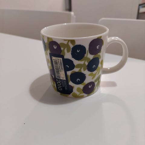Myynnissä Arabian kausimuki Mustikka vuodelta 2010. Harvakseltaan käytetty.