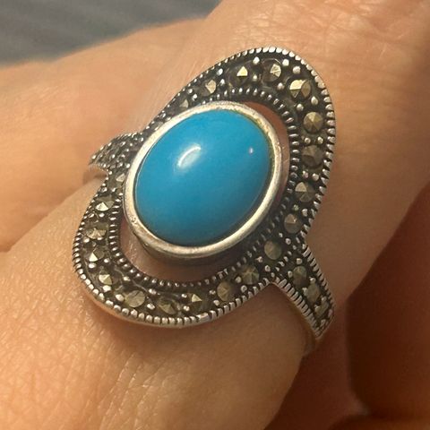 Myynnissä myös toisessa ilmoituksessa hopea&turkoosi riipus joka sopii sormuksen kanssa setiksi.