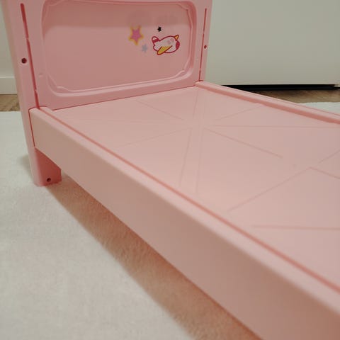 Tukeva nuken sänky. Pojan saa kahteen eri korkeuteen. Leveys 32 cm, pituus 50 cm, korkeus 45 cm.