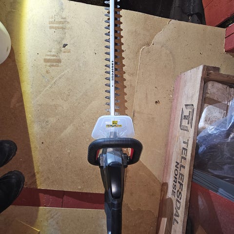 Ostettu kesällä 2025 sähköinen pensas/ruohonleikkuri, jossa on säädettävä kahva ja suojakate. Sopii pensasaitojen ja ruohon leikkaamiseen ja muotoiluun. Laite on kevyt ja helppokäyttöinen.