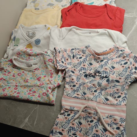 Neule, huppari ja 4kpl kietaisubodeja. Kaikki hyvässä kunnossa ja ehjiä, sinisessä bodyssa hiukan värjäymää kauluksessa. Nouto Helsingistä tai ostaja maksaa postikulut.
