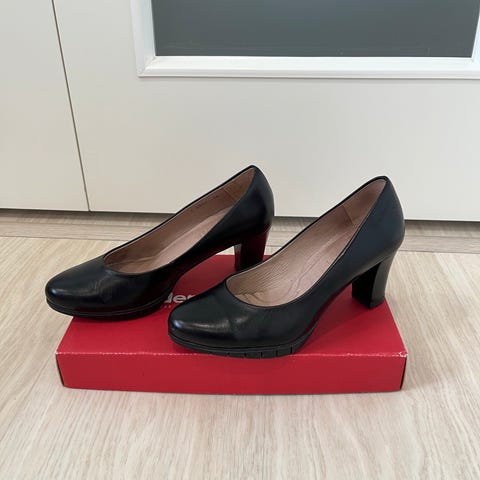 Even&Odd korkokengät, koko 36, musta väri. Kengissä on koristeena läpinäkyviä koristekiviä kärkiosassa. Kuntoluokka hyvä, pohjassa käytön jälkeä, pinnalta siistit.