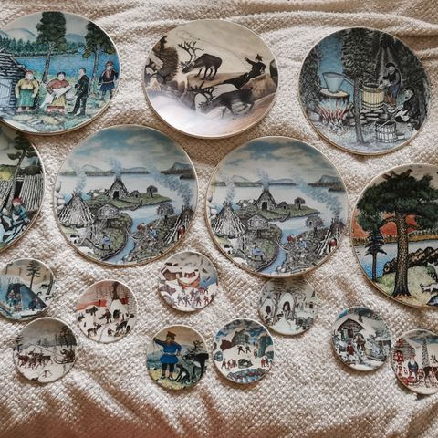 Kuin uudet seinälautaset 8kpl, eli koko sarja. Riittatuulikki Hirvosen suunnittelemat.