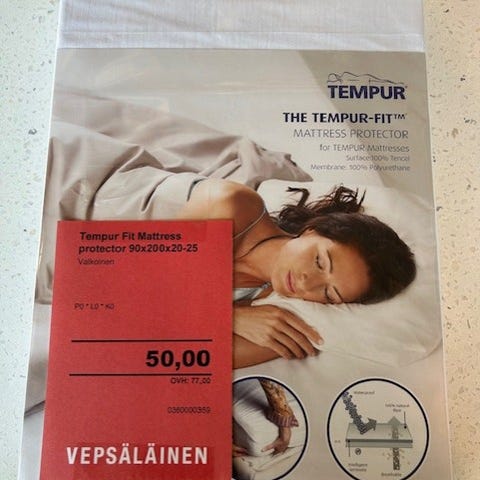 Myydään sänkyjen vaihdon takia tarpeettomaksi jäänyt, hyvin vähän käytetty Tempur Fit -suojalakana.