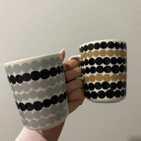 Marimekon siirtolapuutarhasarjan kahvaton kuppi.