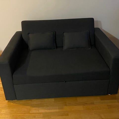 Hyväkuntoinen sininen vuodesohva JYSKistä. Myydään, koska on meille liian pieni.
