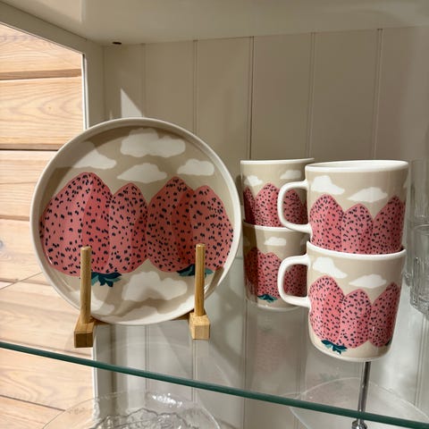 2 kappaletta Marimekon Oiva mukeja Mansikkavuoret vaaleanpunaiset. Tilavuus 2.5 dl. Uutta vastaavassa kunnossa, ilman tarraa. Hinta 15 euroa kappale. Nouto, tai toimitus postimaksulla.